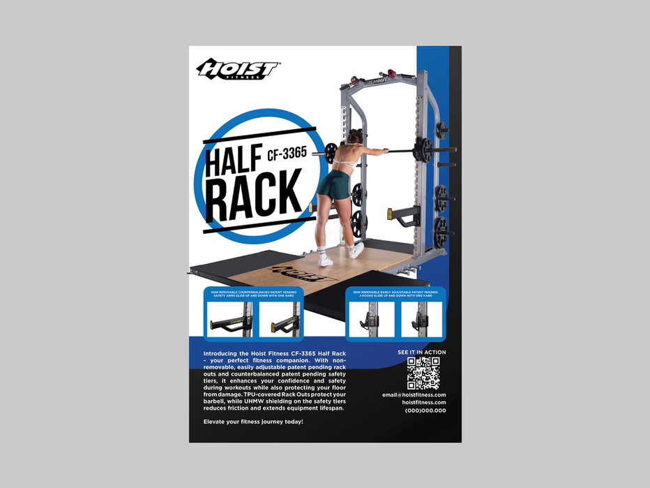 National Fitness Trade Journal is a publication that provides fitness machine manufacturers, club owners, and others in the industry a place to advertise and remain up to date with what happens in the fitness industry. At HOIST Fitness, I was tasked to make an advertisement to introduce the newest product: CF-3365 Half Rack.